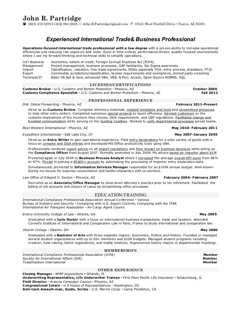 International Trade Resume Sample & Ready To Use Example